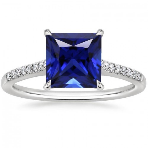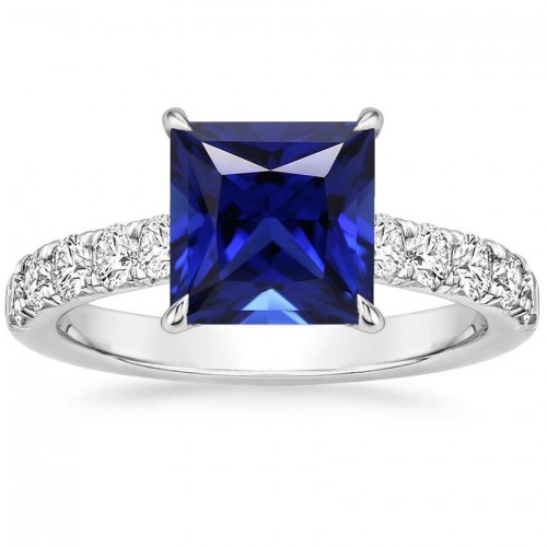Women Gold Princess Blue Sapphire & Natural Earth Mined Diamond Engagement Ring 5.50 Carat