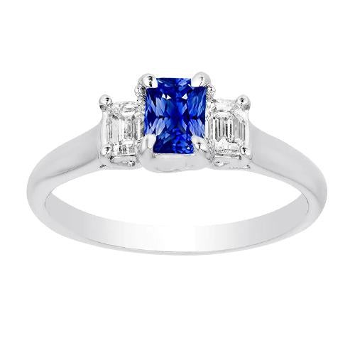 Women’s Gold 3 Stone Natural Earth Mined Diamond Sapphire Ring U Prong Set 1.25 Carats