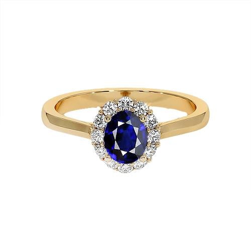 Women’s Gold Natural Earth Mined Diamond & Oval Blue Sapphire Wedding Ring Set 4.50 Carats