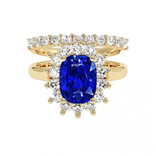 Yellow Gold Natural Earth Mined Diamond Engagement Ring Set Oval Ceylon Sapphire Jewelry