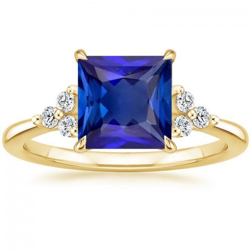 Yellow Gold Ceylon Sapphire Ring Set With Natural Earth Mined Diamond Accents 7.50 Carats