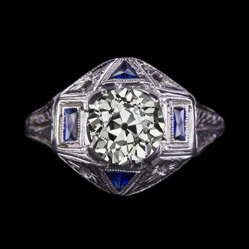 Art Deco Jewelry New Vintage Style Old Cut Real Natural Earth Mined Diamond Sapphire Ring