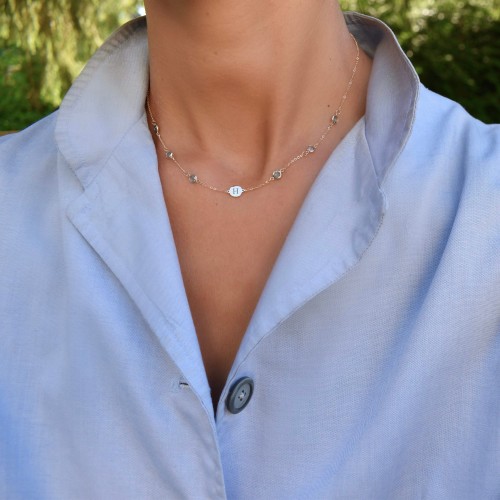 1 Letter & 2 Petite Birthstone Bracelet in 14k Gold
