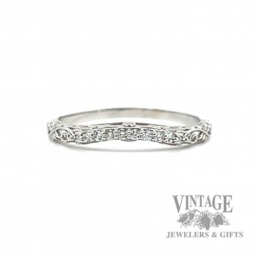 Filigree leaf motif Diamond 14k white Gold curved Ring