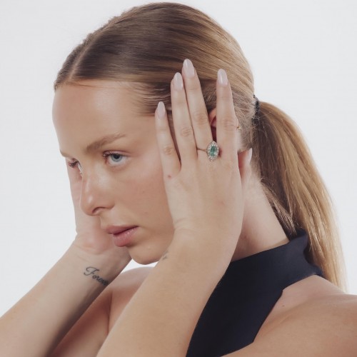 Edwardian GIA 1.50 carat emerald diamond 18k white gold navette ring