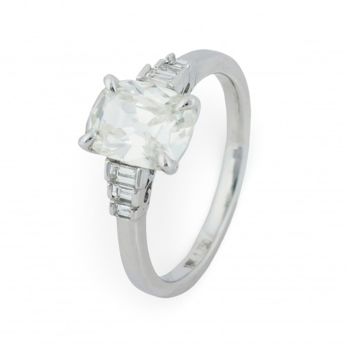 GIA 1.52 carat old mine cut diamond 18k white gold engagement ring
