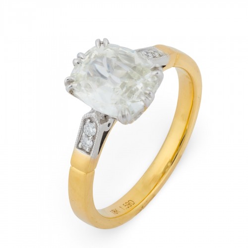 GIA 1.67 carat old mine cut diamond 18k gold engagement ring