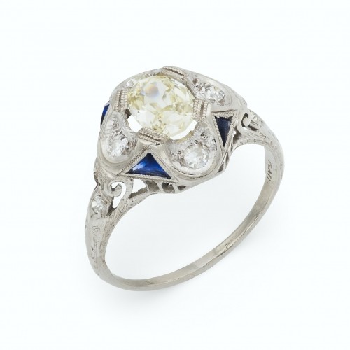 Art Deco 1.05 carat sapphire diamond platinum engagement ring