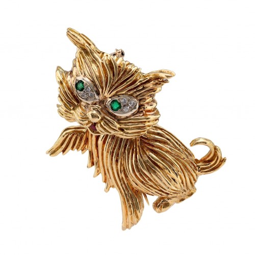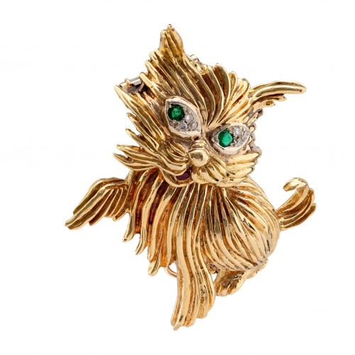 Vintage Emerald Ruby Diamond 18K Yellow Gold Cat Brooch – GFH