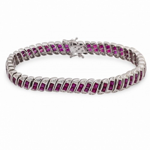 Vintage French 6.00 carat ruby diamond 18k white gold bracelet