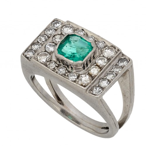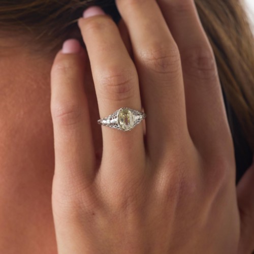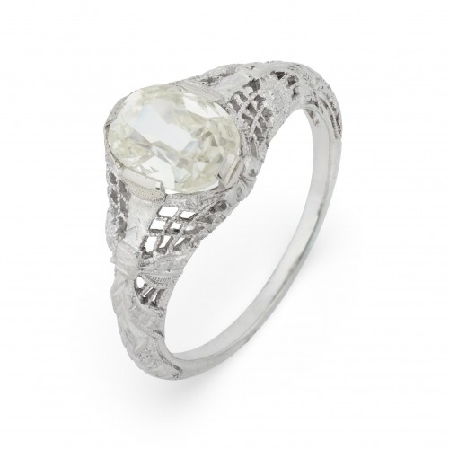 Art Deco GIA .94 carat diamond sapphire platinum filagree ring