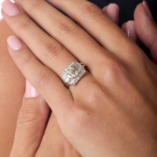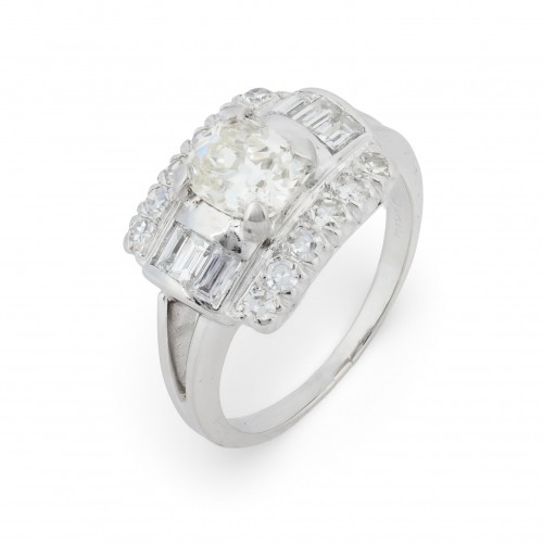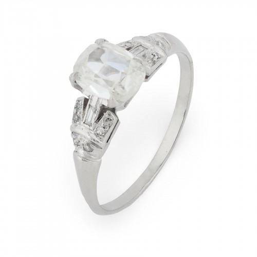 Art Deco GIA 1.00 carat cushion cut diamond platinum engagement ring