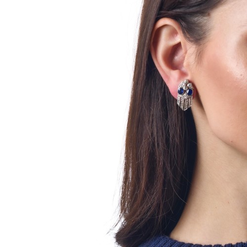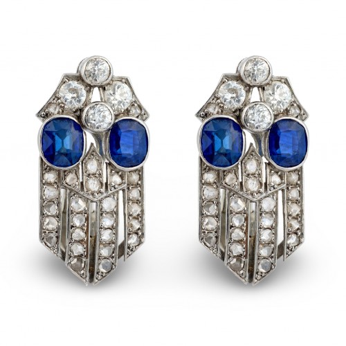 Art Deco French 2.00 carat sapphire diamond platinum earrings
