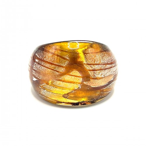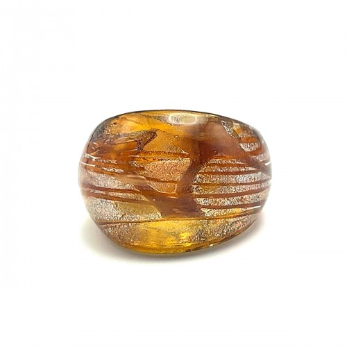 Handmade Glass Acrylic Ring Amber Symphony Silver Stroke Infinity Band: US Ring Size 9