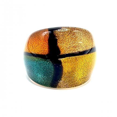 Handmade Glass Acrylic Ring Aqua Elegance Golden Fusion Infinity Band: US Ring Size 4.5
