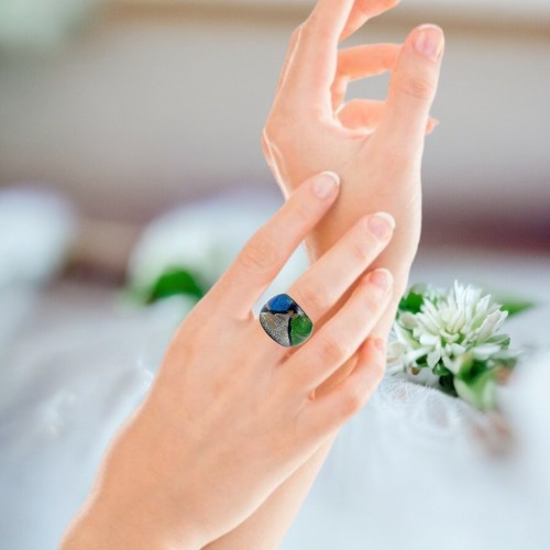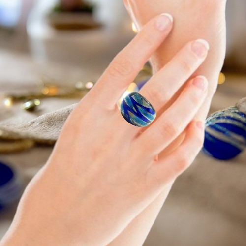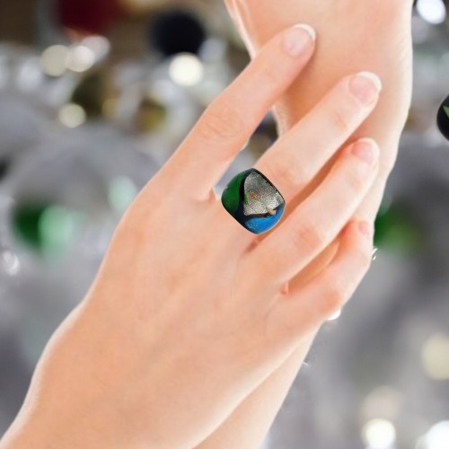 Handmade Glass Acrylic Ring Aqua Earthy Artistry Infinity Band: US Ring Size 7.5