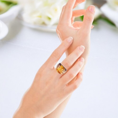 Handmade Glass Acrylic Ring Amber Radiance Silver Luster Infinity Band: US Ring Size 9