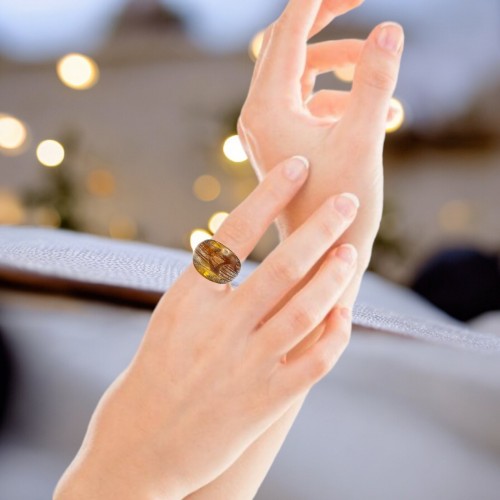 Handmade Glass Acrylic Ring Amber Symphony Silver Stroke Infinity Band: US Ring Size 9