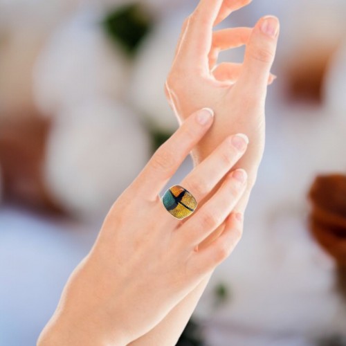 Handmade Glass Acrylic Ring Aqua Elegance Golden Fusion Infinity Band: US Ring Size 4.5
