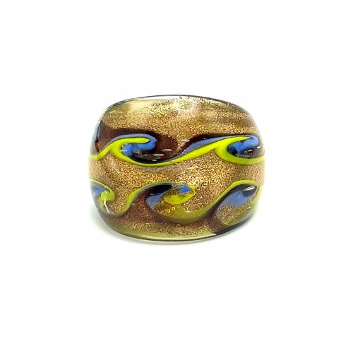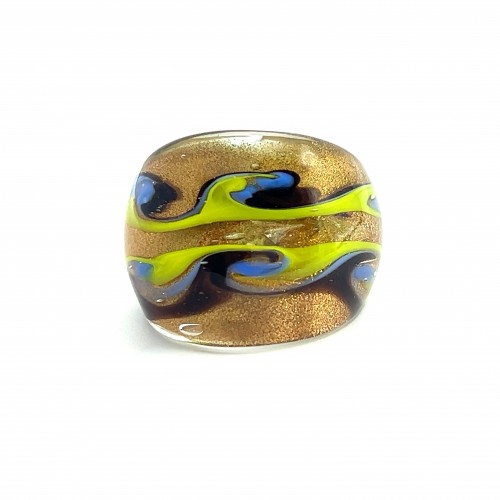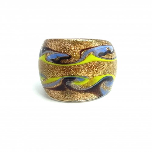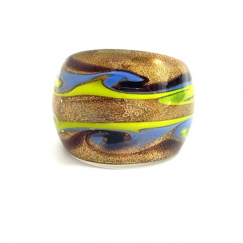 Handmade Glass Acrylic Ring Artisan Striped Splendor Golden Infinity Band: US Ring Size 9