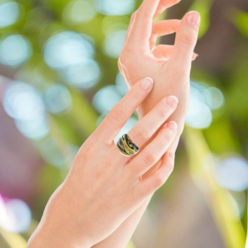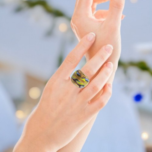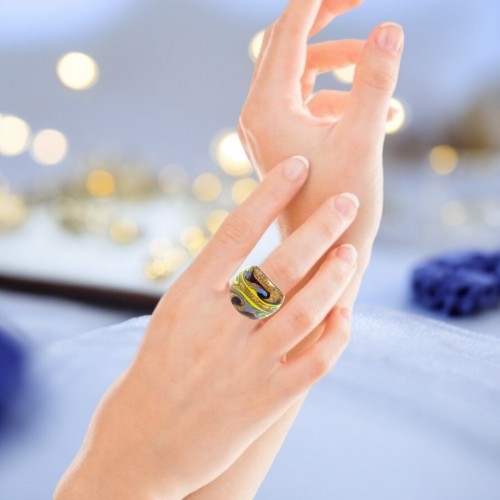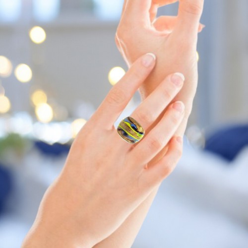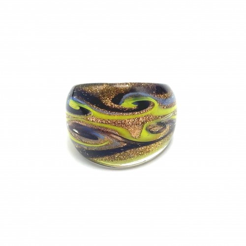 Handmade Glass Acrylic Ring Arabesque Golden Chromatic Infinity Band: US Ring Size 9