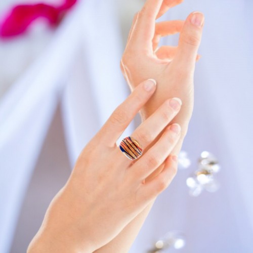 Handmade Glass Acrylic Ring Arabesque Chromatic Golden Infinity Band: US Ring Size 9