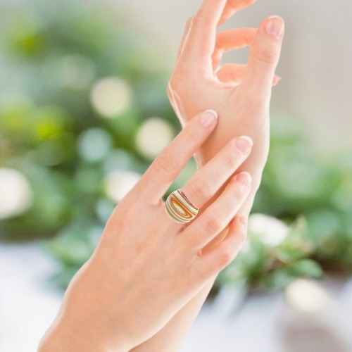 Handmade Glass Acrylic Ring Arabesque Chromatic Gold Infinity Band: US Ring Size 9