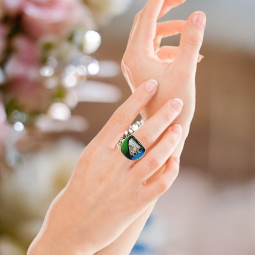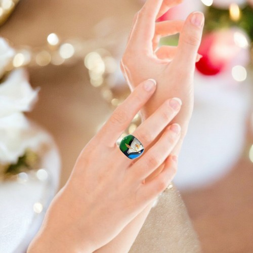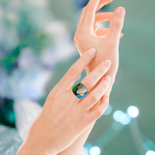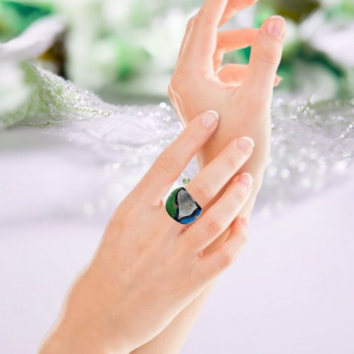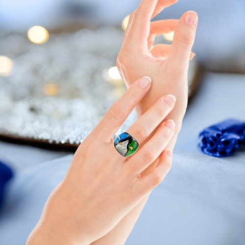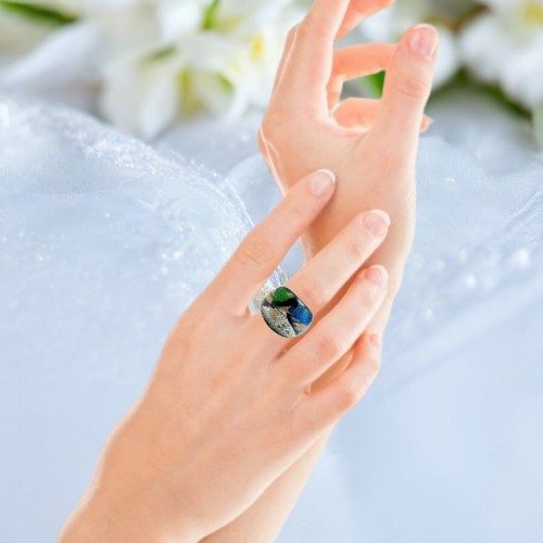Handmade Glass Acrylic Ring Artistry with Aqua Radiance Infinity Band: US Ring Size 8.5