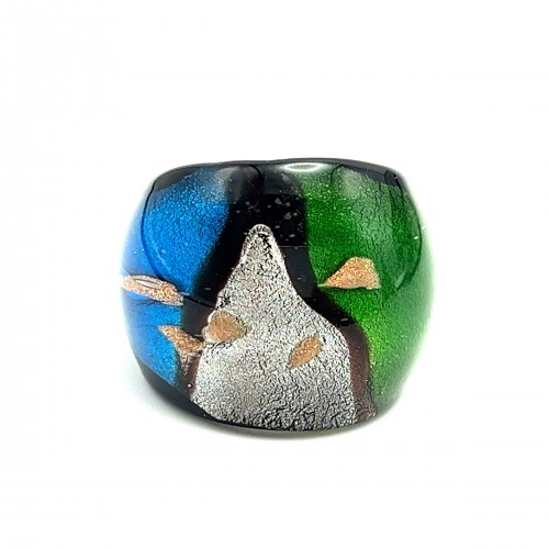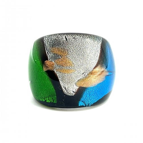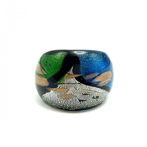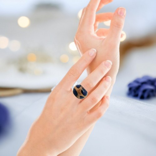 Handmade Glass Acrylic Ring Artistic Navy Bold Golden Infinity Band: US Ring Size 9