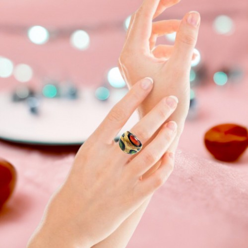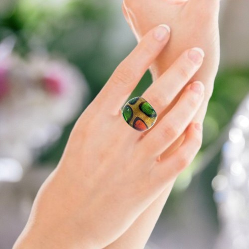 Handmade Glass Acrylic Ring Autumn Citrus Golden Foliage Infinity Band: US Ring Size 8.5