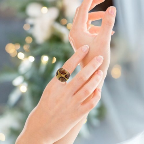 Handmade Glass Acrylic Ring Autumn Citrus Foliage Golden Infinity Band: US Ring Size 6