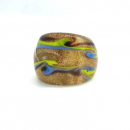 Handmade Glass Acrylic Ring Chromatic Arabesque Golden Infinity Band: US Ring Size 7.5