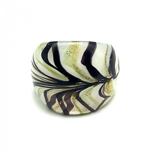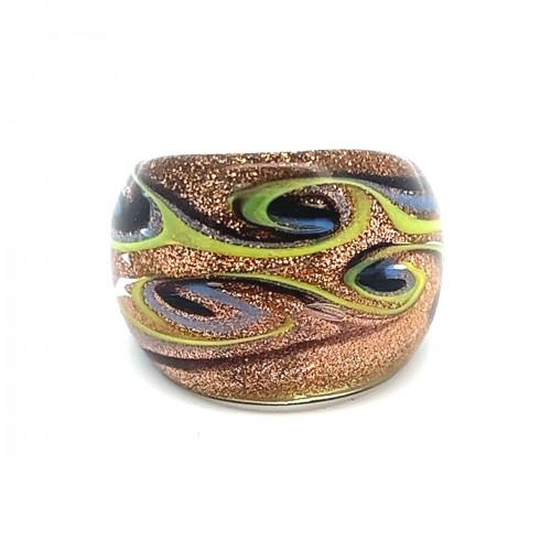 Handmade Glass Acrylic Ring Chromatic Golden Arabesque Infinity Band: US Ring Size 7
