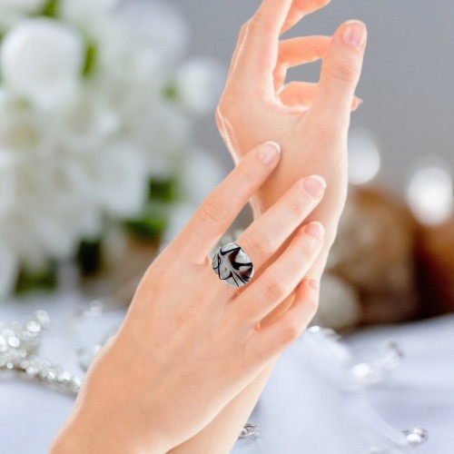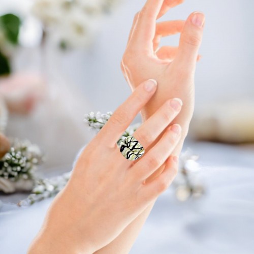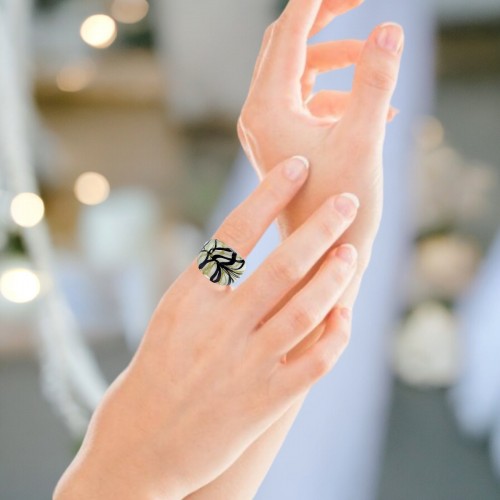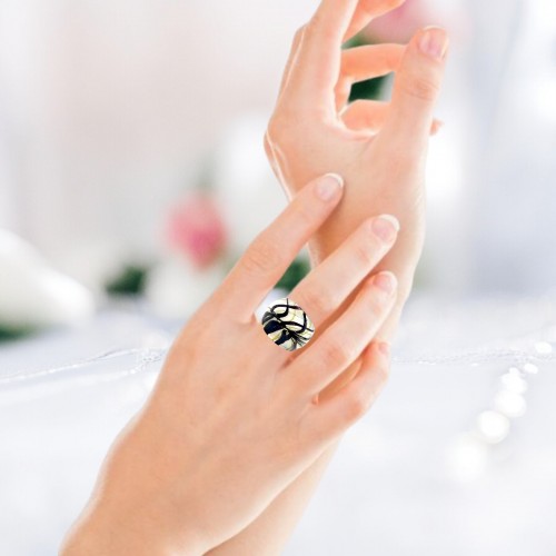 Handmade Glass Acrylic Ring Chic Monochrome Panda Golden Infinity Band: US Ring Size 10.5