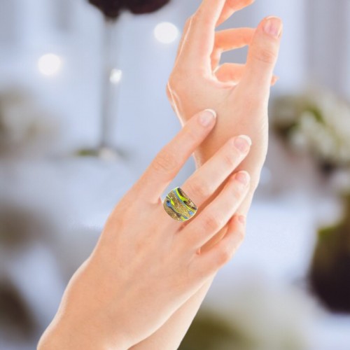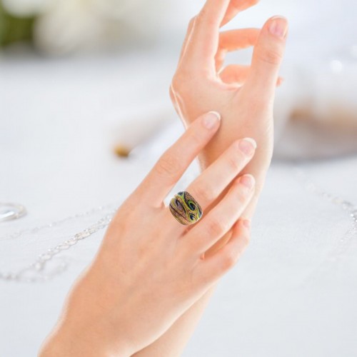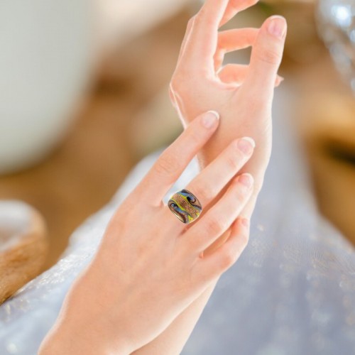 Handmade Glass Acrylic Ring Chromatic Arabesque Golden Infinity Band: US Ring Size 7.5