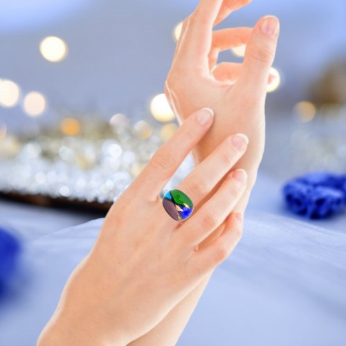 Handmade Glass Acrylic Ring Cerulean Splendor Sparkle Infinity Band: US Ring Size 9