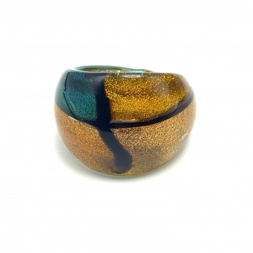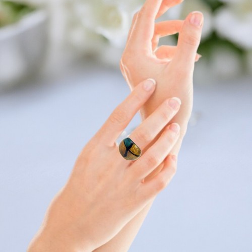 Handmade Glass Acrylic Ring Elegance Aqua Fusion Golden Infinity Band: US Ring Size 9