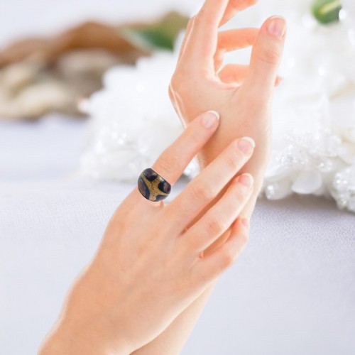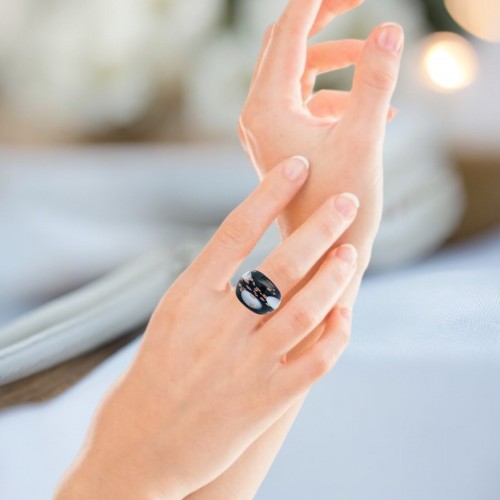 Handmade Glass Acrylic Ring Elegance Gilded of Monochrome Infinity Band: US Ring Size 7.5