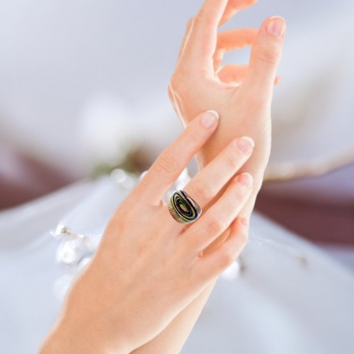 Handmade Glass Acrylic Ring Gilded Radiance Luminescence Infinity Band: US Ring Size 8.5