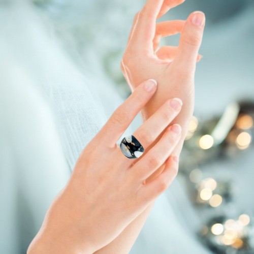 Handmade Glass Acrylic Ring Gilded Monochrome’s Elegance Infinity Band: US Ring Size 4