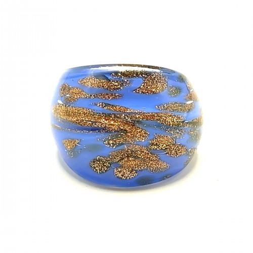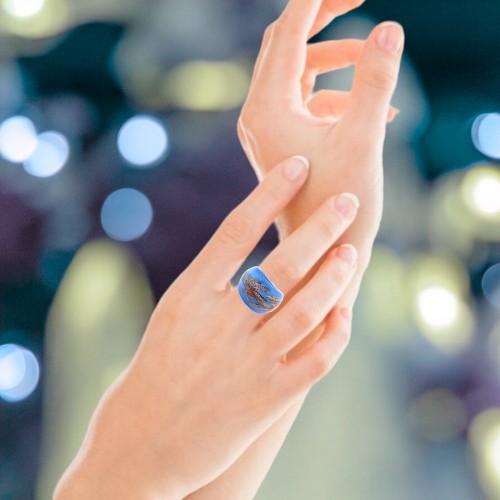 Handmade Glass Acrylic Ring Gilded Opulence in Azure Infinity Band: US Ring Size 7.5