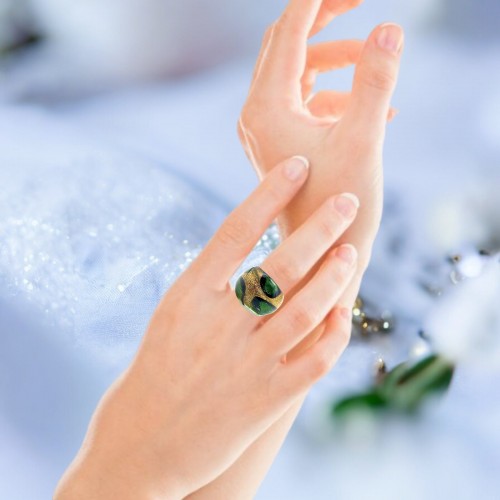 Handmade Glass Acrylic Ring Golden Mint Elegance Sparkled Infinity Band: US Ring Size 8.5