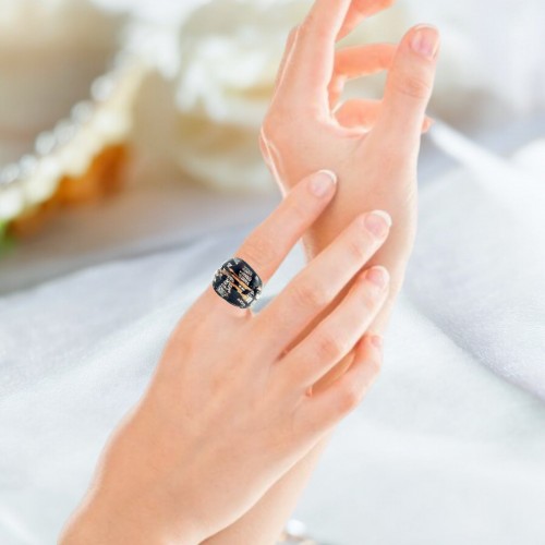 Handmade Glass Acrylic Ring Golden Stripes Black Infinity Band: US Ring Size 7