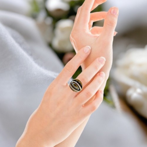 Handmade Glass Acrylic Ring Monochrome Elegance Gilded Infinity Band: US Ring Size 7