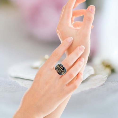 Handmade Glass Acrylic Ring Midnight’s Glimmering Infinity Band: US Ring Size 7.5
