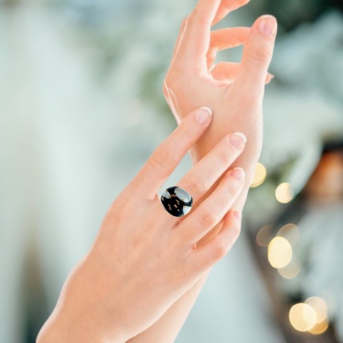 Handmade Glass Acrylic Ring Monochrome Panda Golden Chic Infinity Band: US Ring Size 5