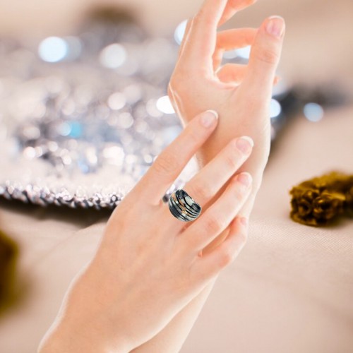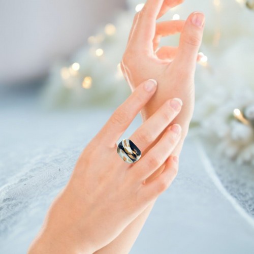 Handmade Glass Acrylic Ring Monochrome Gilded Elegance’s Infinity Band: US Ring Size 9