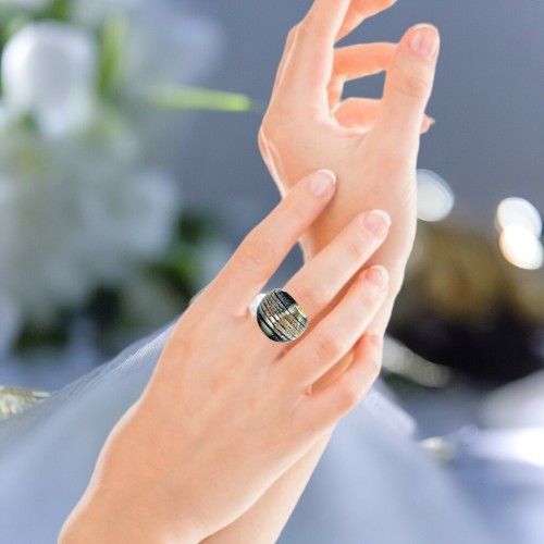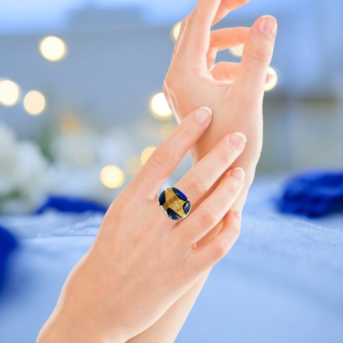 Handmade Glass Acrylic Ring Navy Veils Golden Floral Infinity Band: US Ring Size 9.5