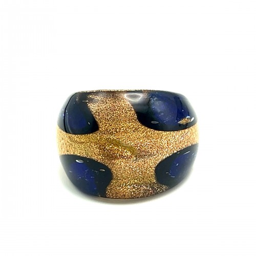 Handmade Glass Acrylic Ring Navy Golden Floral Infinity Band: US Ring Size 9