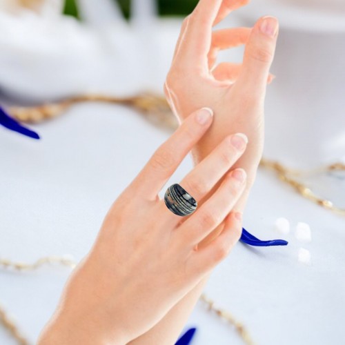 Handmade Glass Acrylic Ring Noir Radiance Silver Infinity Band: US Ring Size 9